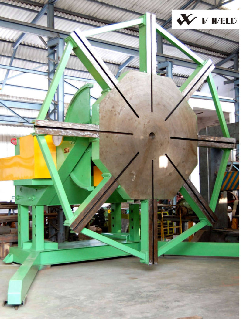 V-WELD, Elevation Tilt Positioner is useful tool machine used to manipulate the job to get the down hand gravity welding for semi-automatic or automatic welding. Elevation Tilt Positioners are 3 Axis machine, which has Table Rotation, Table Tilting & Elevation system. Entire positioner chassis shall be lifted to increase job diameter swing and it takes the load at lifted height.