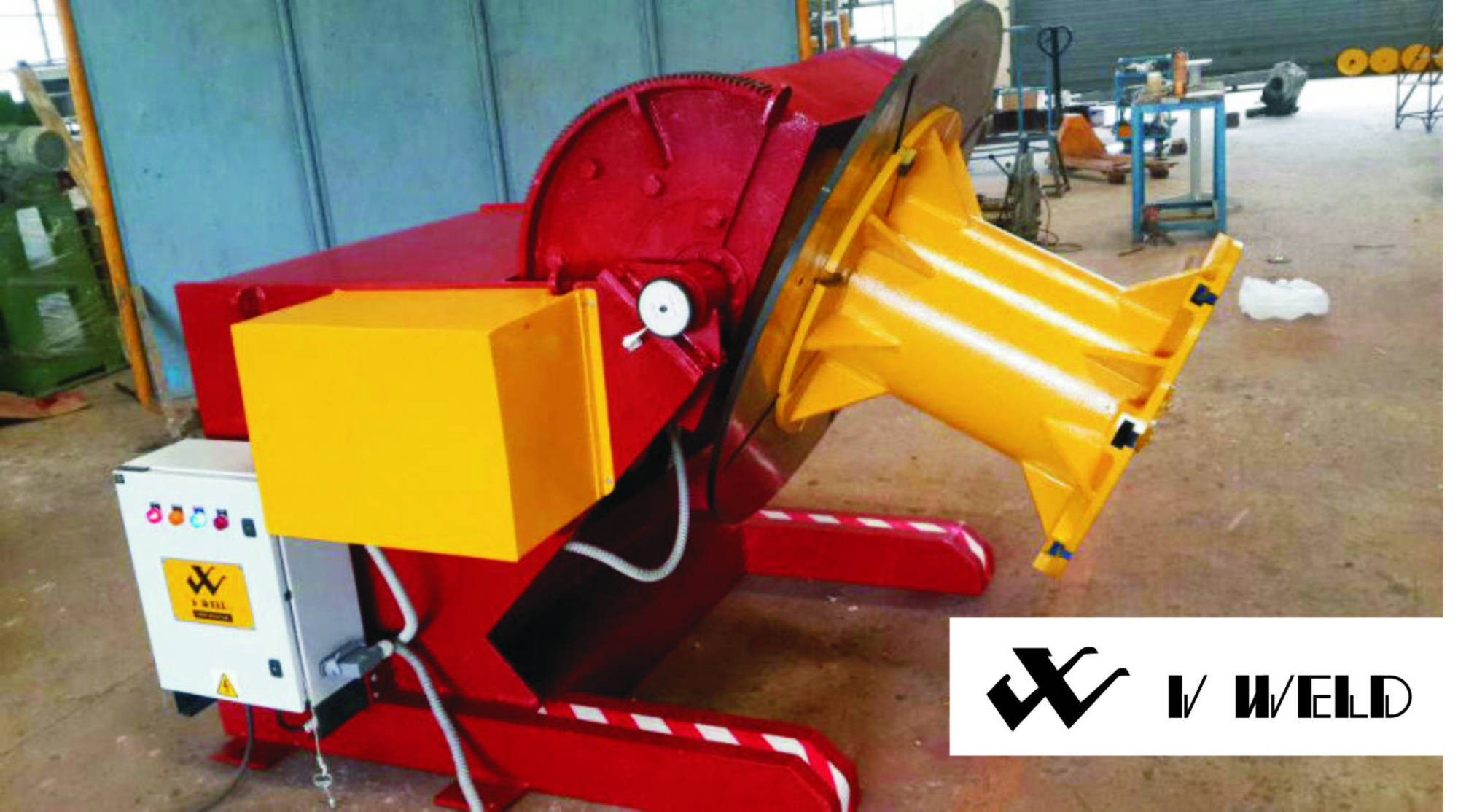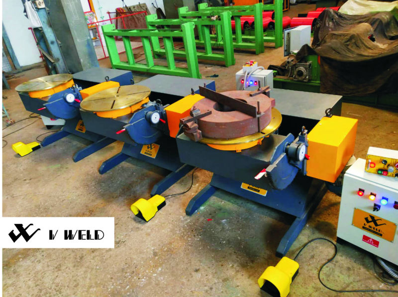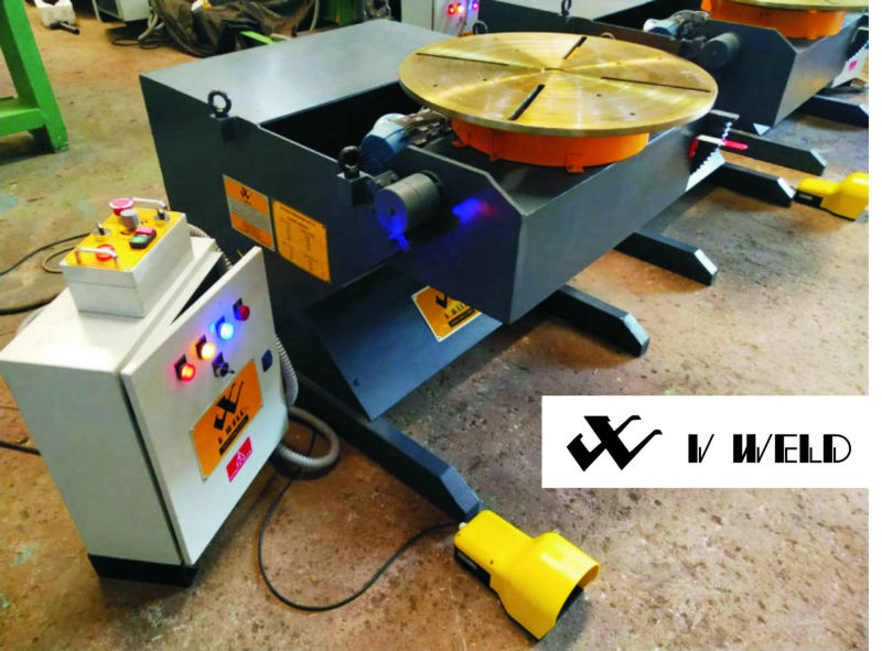 V-WELD, Tilt Positioner is useful tool machine used to manipulate the job to get the down hand gravity welding for semi-automatic or automatic welding. The job will be loaded and fastened on positioner table, which facilitate the rotation of job in 1 axis and also facilitate to tilt the job, through 120 deg or 135 deg to get the weld area on down hand position. When Tilt positioner integrate with welding manipulators, it can provide excellent results in welding quality, faster production process and ease in operation and handling job.
