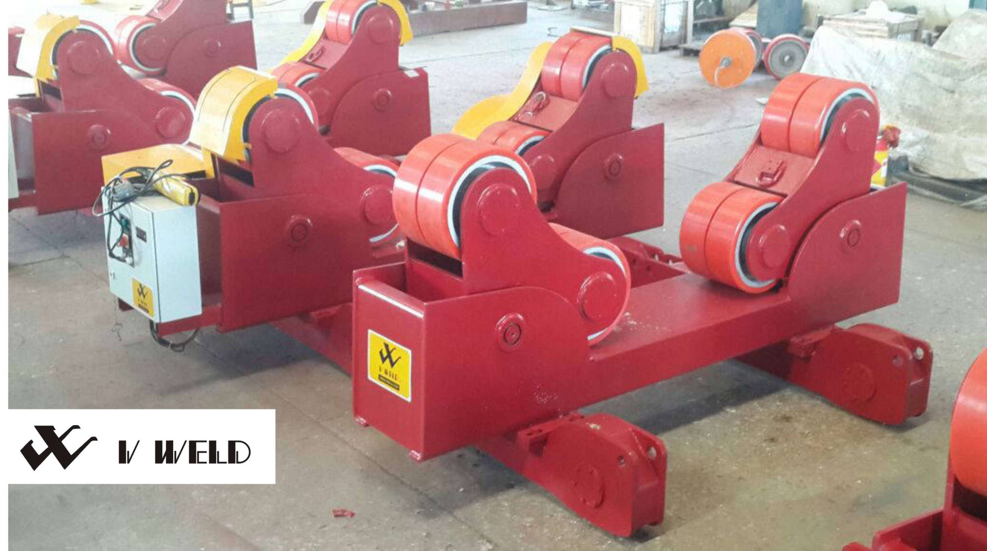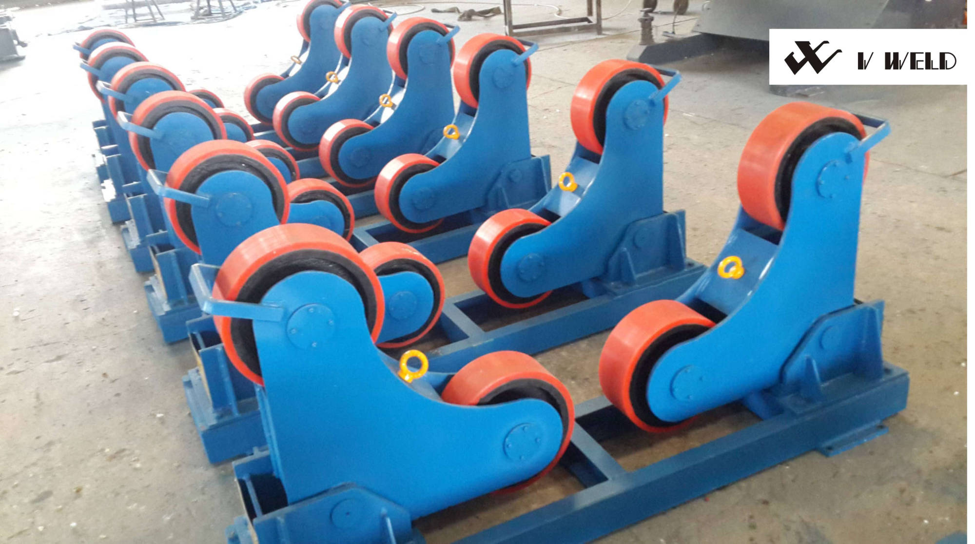 V-WELD Self Aligning Rotator are having one power unit and one idler unit with combined load capacity of set, as per the rated load of set. The vessel or job supported on four rollers and due to self aligning design, the rollers will adjust automatically with respect to job diameter and irrespective job ovality. Self Aligning more suitable for thin vessel.
